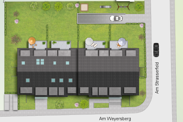 Am Rand des Stadtteils Unterbach in der ruhigen Seitenstraße „Am Weyersberg“ errichten wir ein modernes Mehrfamilienhaus. Schnell gelangt man von dort in die freie Landschaft, die ein erholsames Naturerlebnis bietet, doch auch direkt vor Ihrem Fenster gibt es viel Grün in den Gärten rund ums Gebäude. Mit nur sechs bzw. acht Wohnungen pro Treppenhaus entsteht eine übersichtliche Nachbarschaft, die exklusives Wohnen ermöglicht.